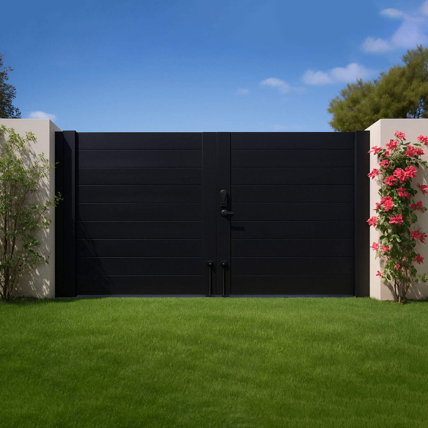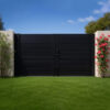 These modern aluminum horizontal slat gate kits come in black and white and offer the options of either complete privacy with no gaps between slats or 3/8 inch gaps between slats. They are perfect for driveway entrances. They will fit openings up to up to 13ft (156 inch) Wide x 6ft (72 inch) High and include all necessary components for easy assembly. Rust-resistant, low-maintenance, and built to last.